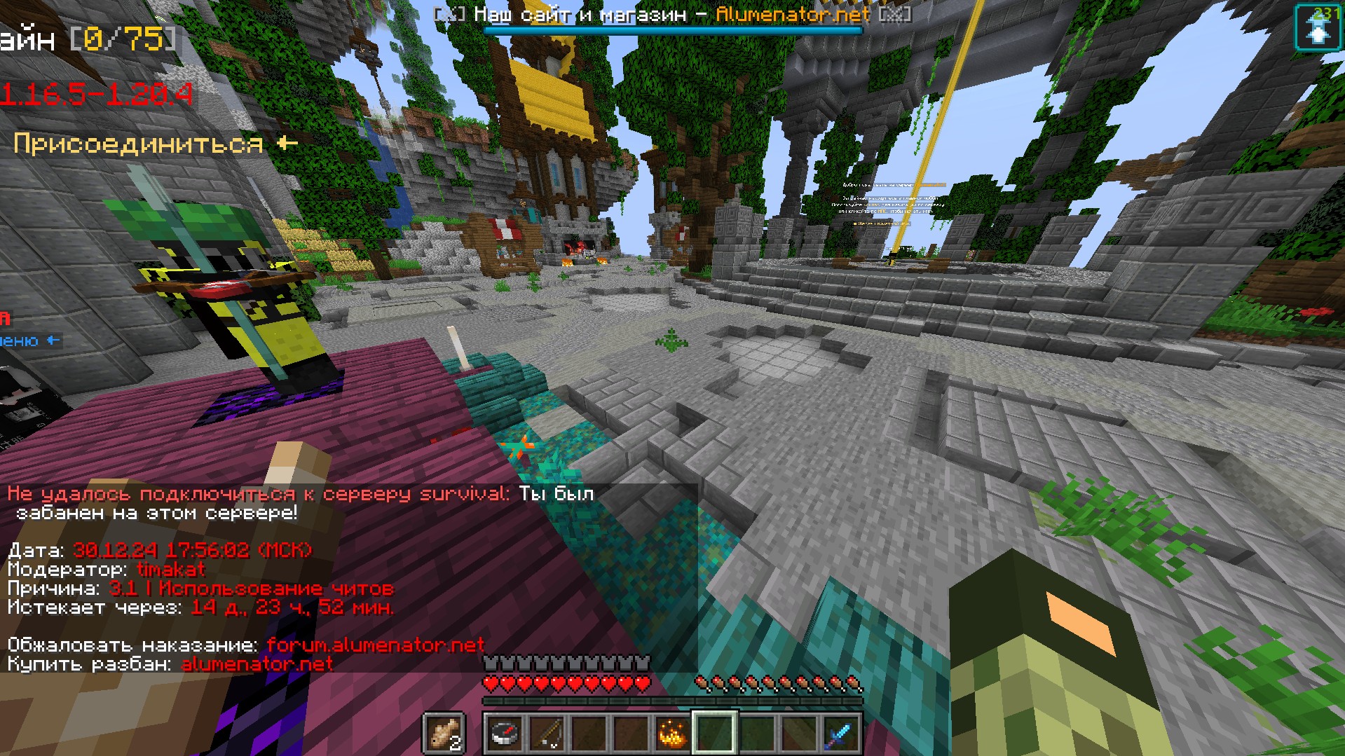 хотя я написал что он не работает всё равно дали бан