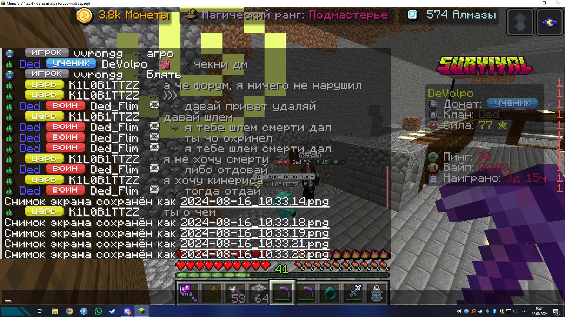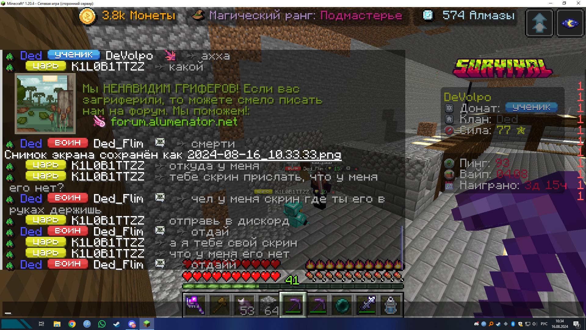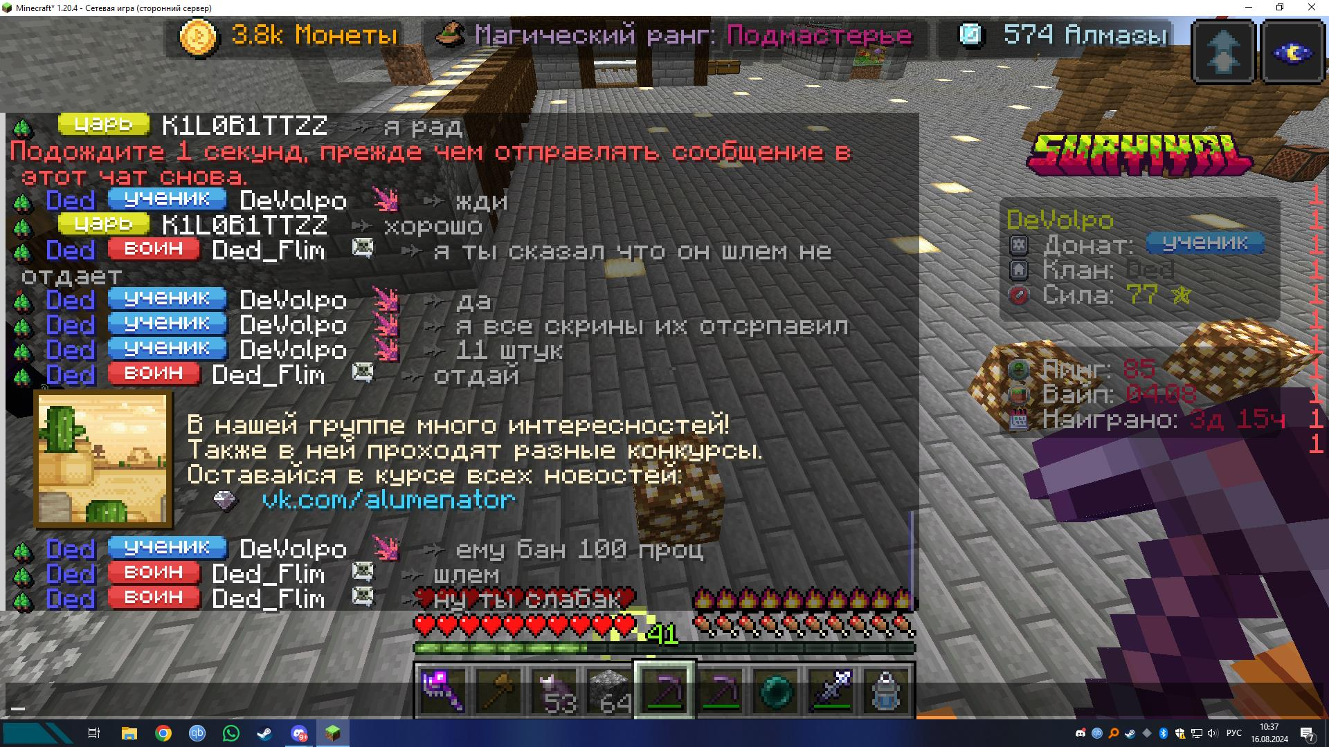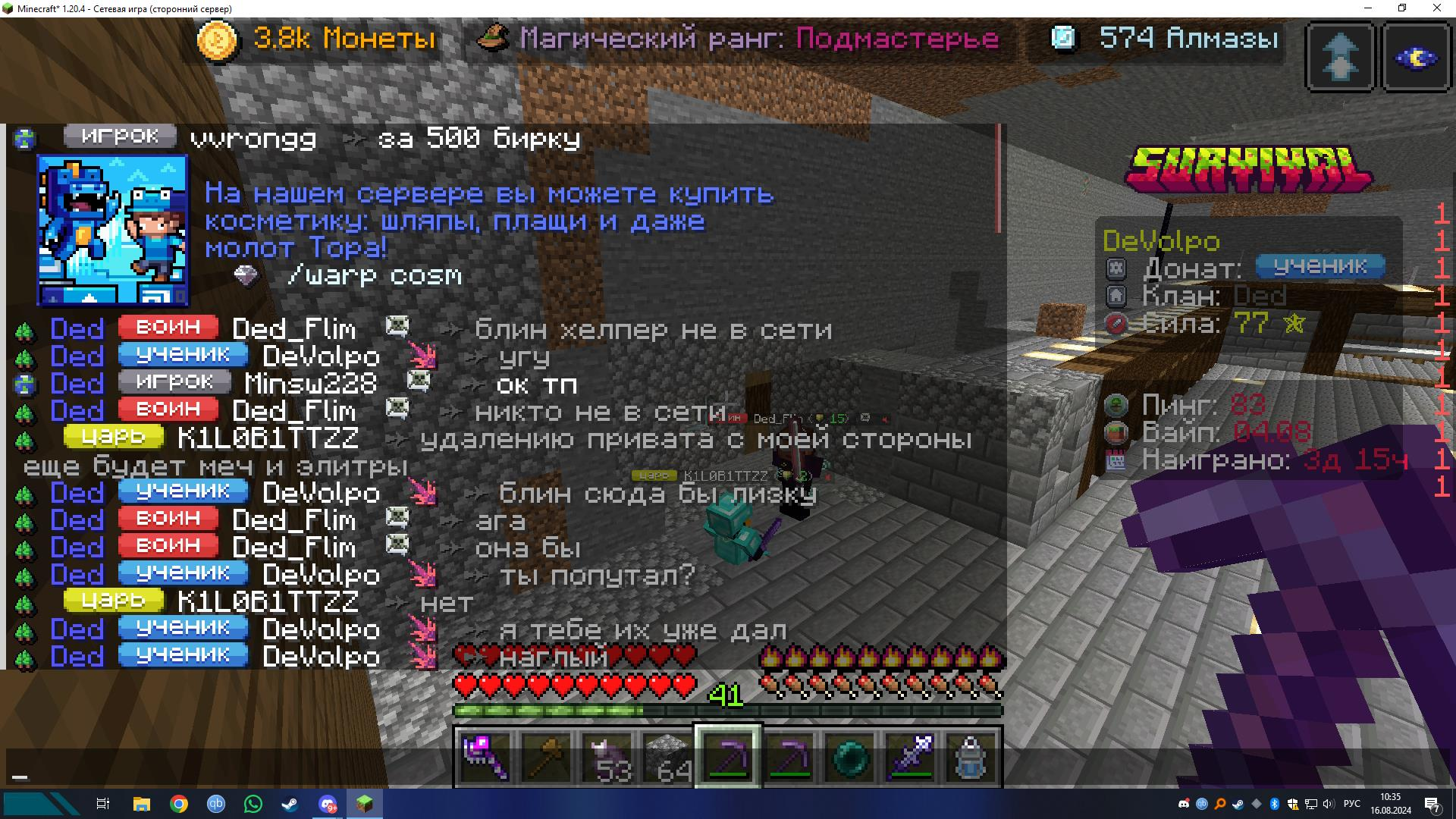 Добрый день,K1LOB1TTZZ украл шлем смерти украл незеритовый меч,также поставил свой регион у нас на вазе также помеха в рг